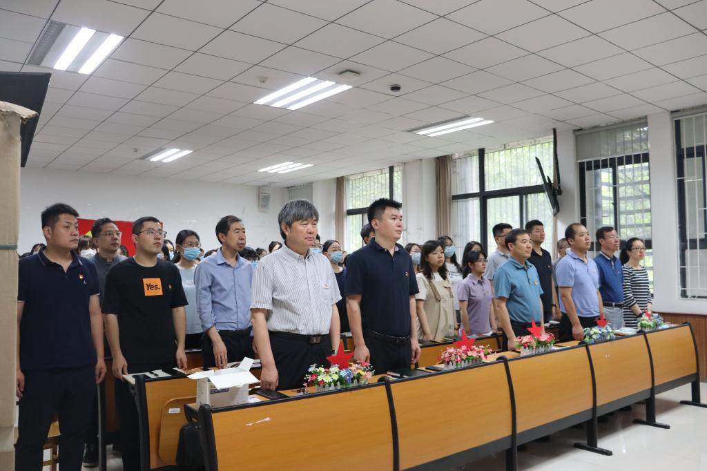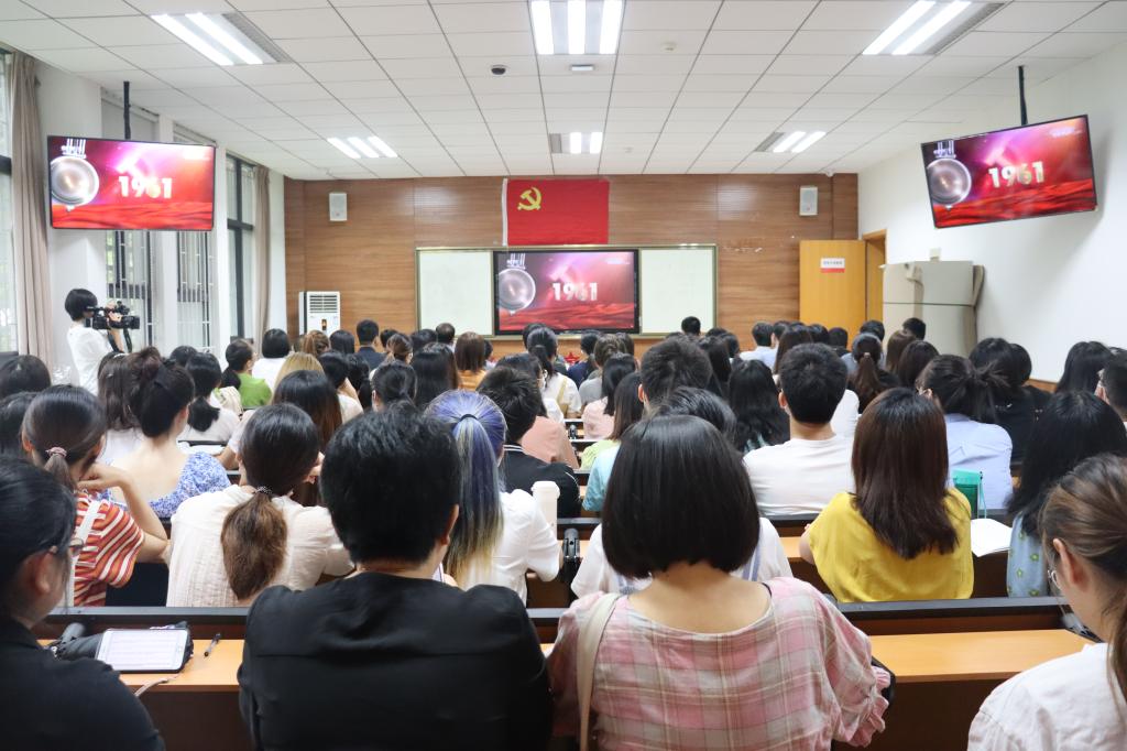 我院在文汇楼A段102室组织师生党员集体收看大会实况直播。学院领导班子成员、教工党支部书记、全体辅导员、各学生党支部党员代表、学生会及研究生会学生代表到场观看。大会伊始,与会师生齐声合唱《没有共产党就没有新中国》。直播过程中,全体师生端坐静听,认真记录,神情专注。