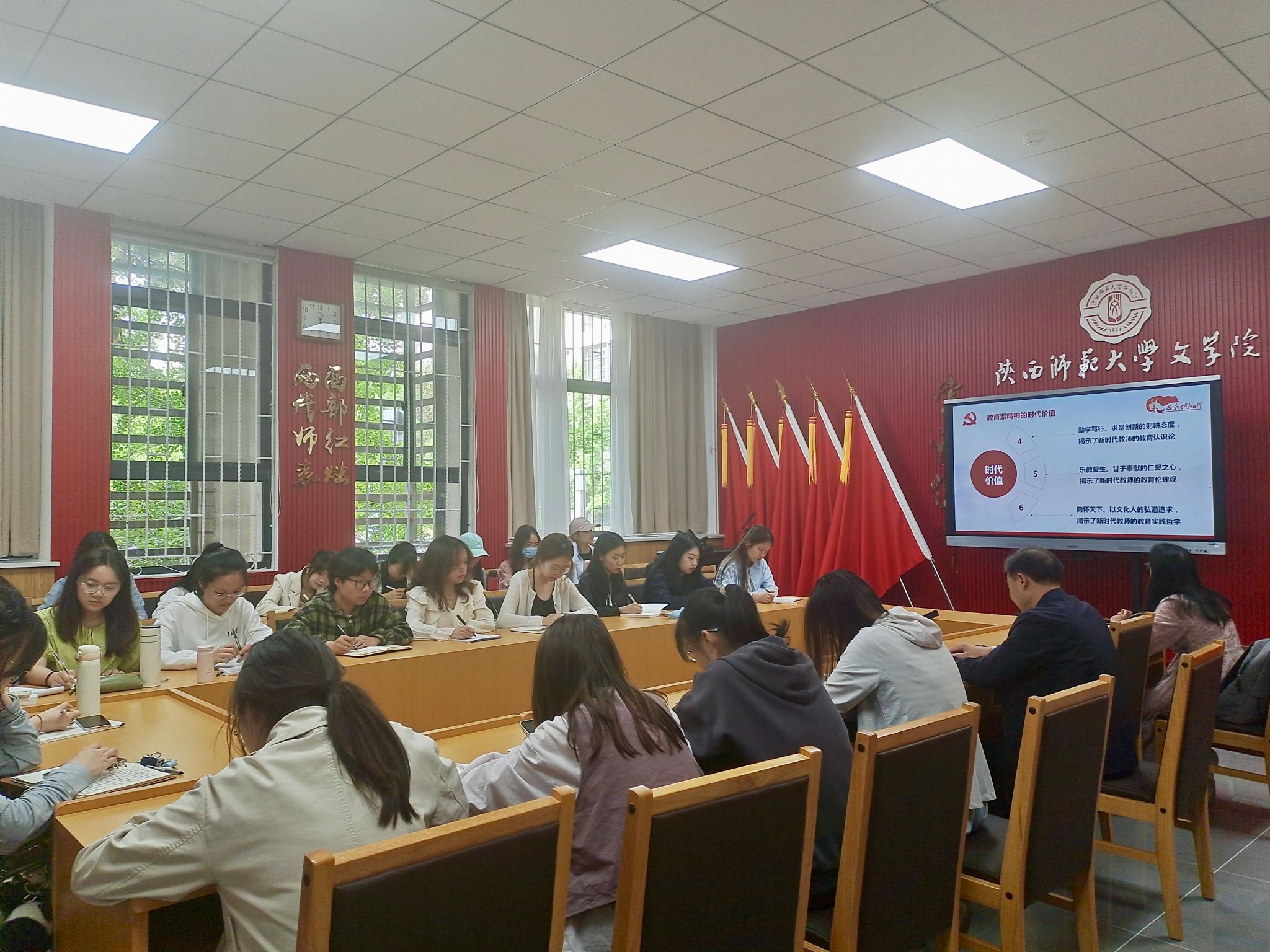 闫文杰从教育家精神的提出及发展过程、本质内涵、时代价值、弘扬与践行等方面进行了讲授,重点阐述了教育家精神的时代价值以及弘扬与践行教育家精神的重要意义,指出“中国特有的教育家精神”反映了人民教师的价值追求、时代精神、集体人格和职业精神。