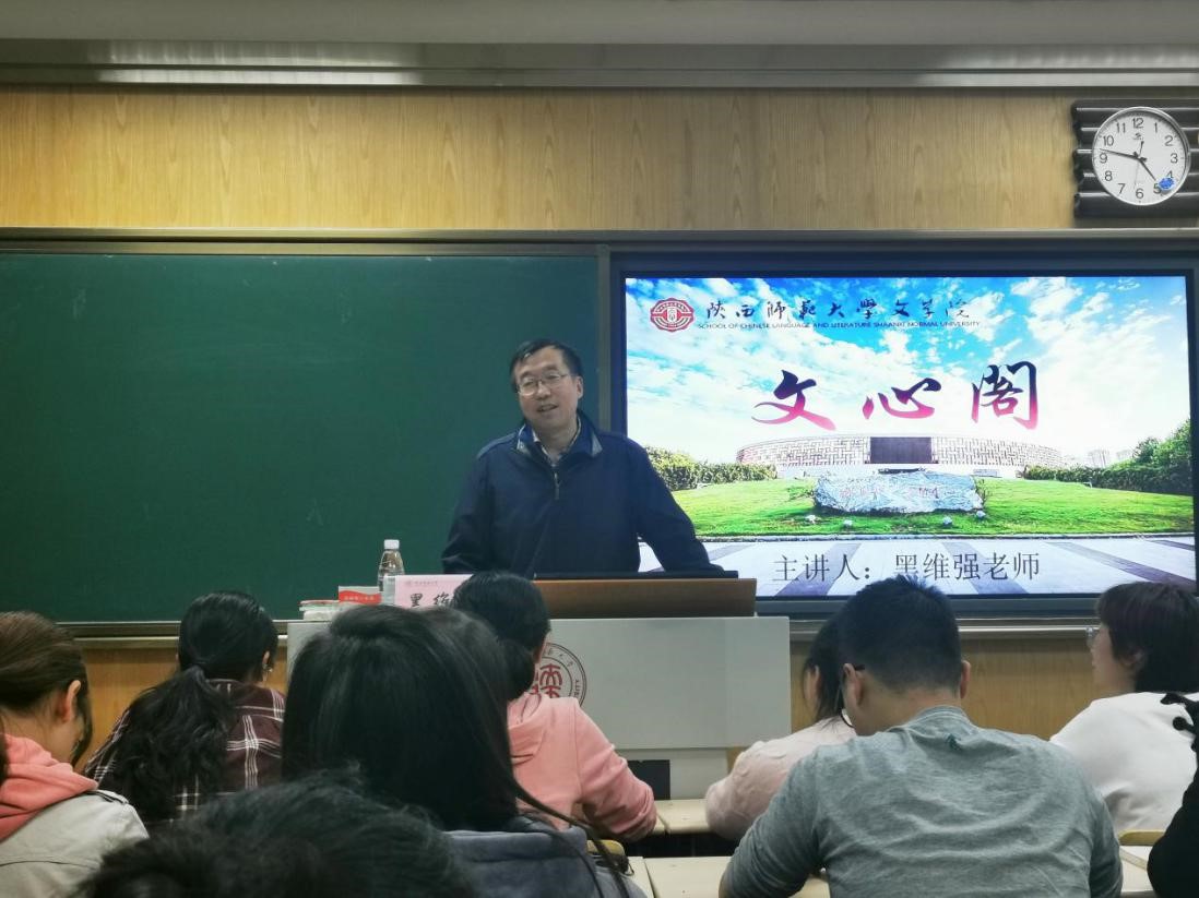 10月10日16:30,本学期第1期(总第233期)文心阁交流活动在文渊楼3113教室举行。必发集团教授黑维强老师应邀参加本次活动。黑维强教授现为必发集团博士生导师,以近代汉语,训诂学,方言学,敦煌学为主要研究方向。在此次文心阁活动中,黑维强老师就专业研究领域展开介绍,分享学习研究经历,并为同学们答疑解惑。