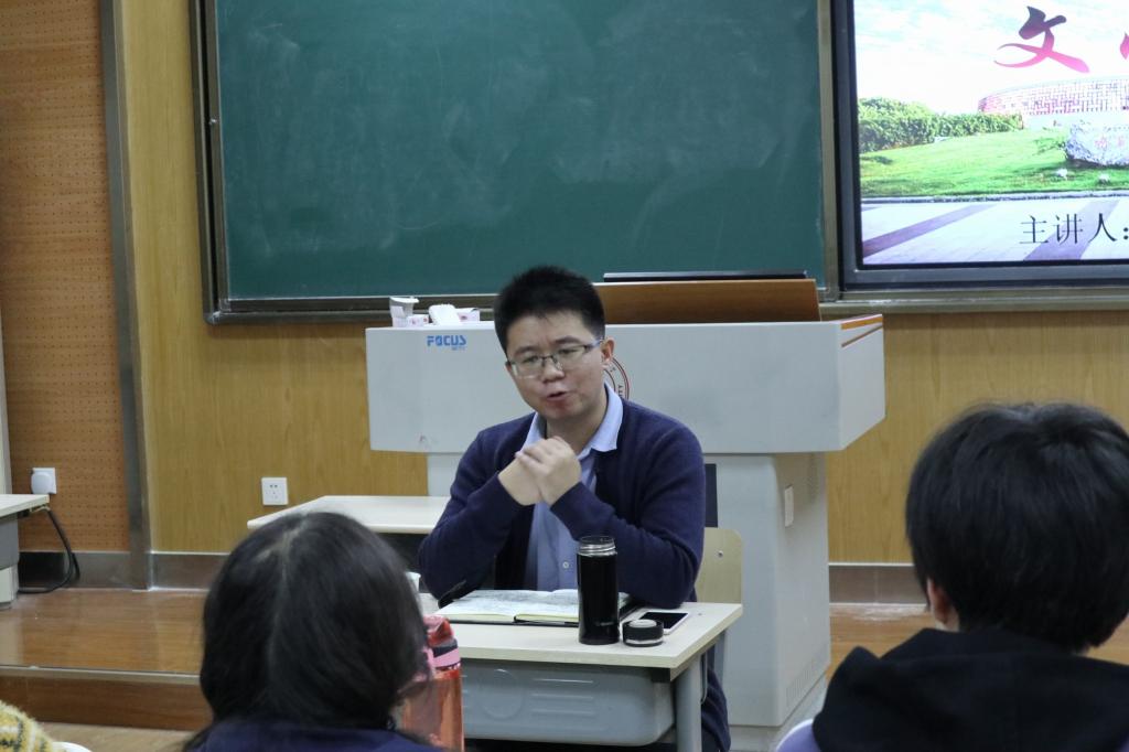 2019年10月17日19:10,本学期第二期(总第234期)文心阁交流活动在文渊楼3103室顺利举行。冯超老师应邀参加本次交流活动。冯老师现于我院承担现代文学等科目的教学工作。在此次文心阁活动中,冯老师结合自身学习生活的经历,就如何更好地度过大学四年与同学们进行了分享和交流。