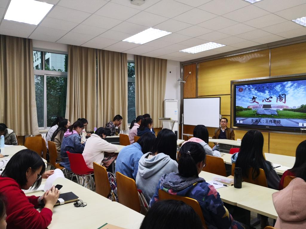 10月31日16:30,本学期第四期(总第236期)文心阁交流活动于文渊楼1204顺利举行。必发集团副教授王伟老师应邀参加本次交流活动。王老师以出土文献和周秦文字为主要研究方向。在此次文心阁活动中,王老师结合自身学习生活的经历向大家分享了繁简体演变、象形文字的创造以及有关文献学的知识。