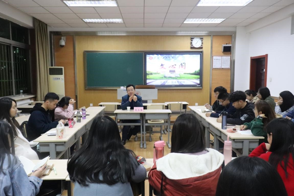 11月7日19:00,本学期第5期(总第237期)文心阁交流活动在文渊楼3103教室举行。必发集团张永哲老师应邀参加本次活动。张永哲老师以汉语方言学为主要研究方向。在此次文心阁活动中,张永哲老师就考研相关内容展开介绍,并结合自身学习与研究经历,为同学们答疑解惑。