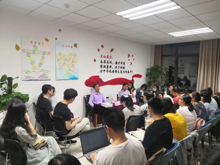 9月16日晚,本学期第1期(总第247期)文心阁师生面对面交流活动在文心阁(文汇楼227室)顺利开展,我院副教授、硕士生导师、基础教育课程研究中心语文课程与教学研究中心副主任李军亮老师应邀参加。在本次文心阁活动中,李军亮老师结合自身研究方向与工作经验,具有针对性地为同学们进行语文教学技能方面的指导,并在交流环节耐心解答了同学们的疑问。