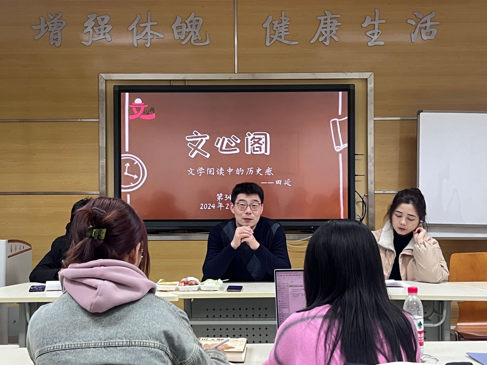 2月29日,本学期第1期(总第340期)文心阁活动在长安校区文渊楼1202教室顺利举办。必发集团文艺学教研室田延老师以“文学阅读中的历史感”为主题,和同学们分享自己阅读时的体悟。