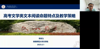 (通讯员:张雪芳)2025年6月1日上午,“高中语文教学能力提升”高级研修班系列课程第七讲顺利举办。本次课程由我院教授、副院长、博士生导师李跃力老师主讲,题目为“高考语文文学类文本阅读命题特点及教学策略”,300名来自一线的高中语文教师学习了本次课程,100多名中学语文教师通过直播旁听了本次课程。