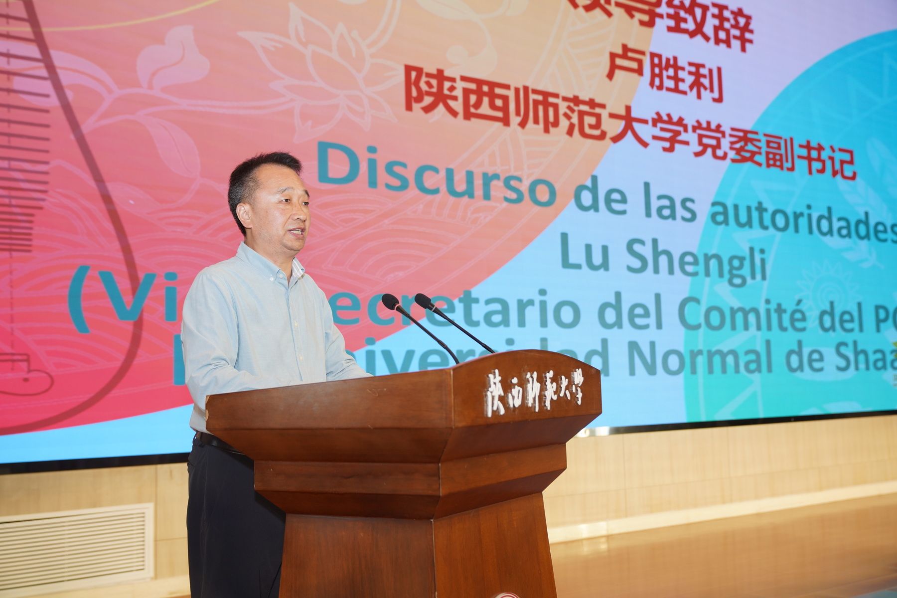 我校党委副书记卢胜利在活动上致辞。他说,长安是中国诗歌的“精神原乡”,我校长期扎根陕西,依托本地丰厚的历史文化资源,坚守文化传承使命,将诗歌教育深度融入育人体系,涵养了学校独特的人文气质。他期望以本次诗歌朗诵交流会的成功举办为契机,进一步加强学校与中国作协、省作协等的深度合作,持续建设跨文化高水平交流平台,为推动中拉文明互鉴、助力陕西文化强省建设贡献师大力量。