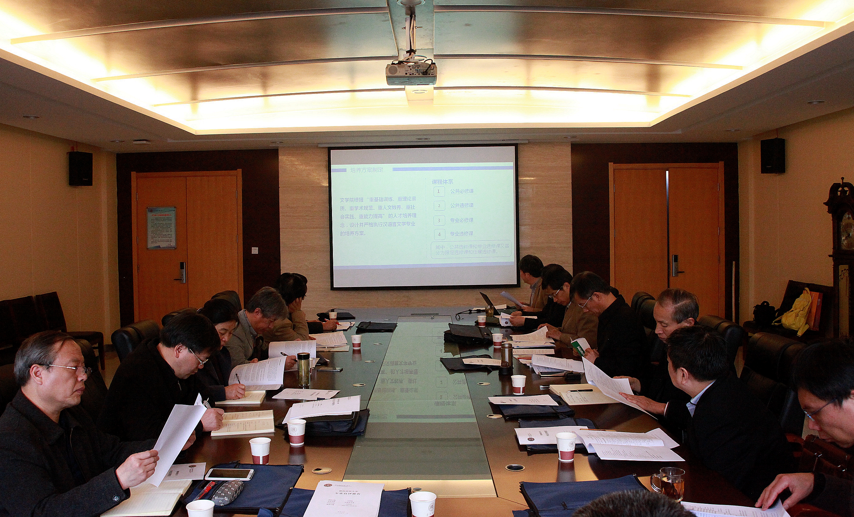 首先,苏仲乐副院长代表学院向专家组汇报了汉语言文学、秘书学两个专业的自评情况。他就两个专业建设中存在的主要问题以及整改措施进行了重点汇报,并回答了专家组的提问。自评汇报结束后,专家组对我院的教学条件保障及实验教学,人才培养方案、课程建设以及实践教学,教学管理以及教学质量监控,毕业论文以及考试试卷进行了抽查,并与教师及学生代表分别座谈。最后,专家组成员结合自评汇报和检查、座谈情况,对我院本科专业建设情况进行了反馈,指出了我院专业建设中存在的不足和问题,并就下一步的整改提出了建议和要求。