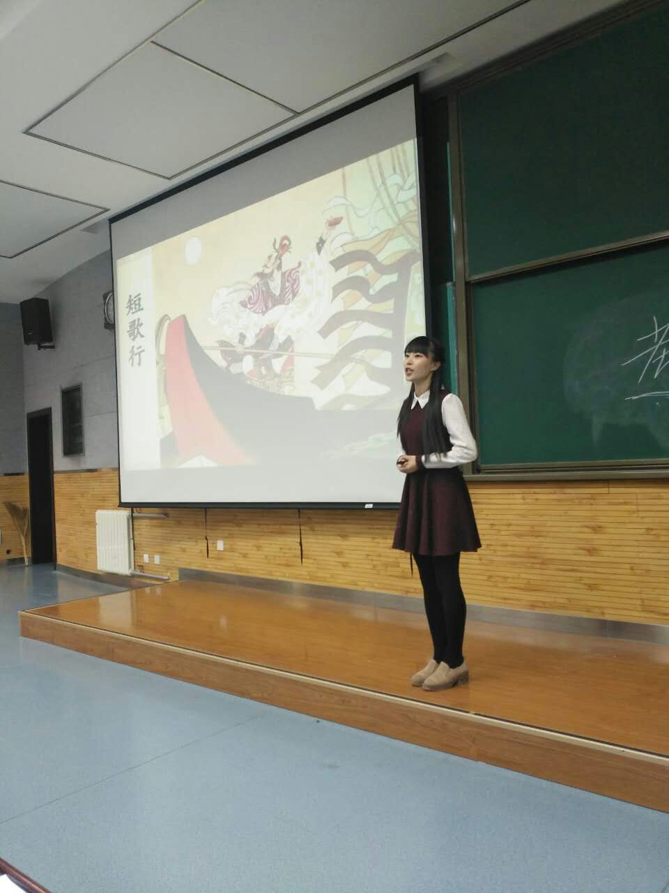 在比赛现场,八位同学用他们的精心设计和卓越表现,为我们展示了师范生的实力和风采。一杯《将进酒》,我们欣赏到郎平同学的风韵;一场《定风波》,我们领会到袁玥同学的敏锐;一回《逍遥游》,我们体悟到文超同学的睿智;一片《醉花阴》,我们感受到白浩同学的细腻;一曲《短歌行》,我们见识到了王艳芳和石凯琳同学的霸气;一篇《寡人之于国也》,我们品味到李慧同学的严谨和温婉;一首《咏怀·夜深不能寐》,我们认识了贾尚明同学的深厚和气度。现场同学们的积极配合,也为这次决赛注入可观可感的活力。担任本次决赛的评委有特级语文教师李克、省教学能手王美智老师、陕西学前师范学院中文系主任牛文明老师和我院的贺卫东、马守君老师。评委老师们从教学目标、教学内容、教学设计、教学方法、教学语言和教态等各方面,给同学们做了精彩的点评和指导。