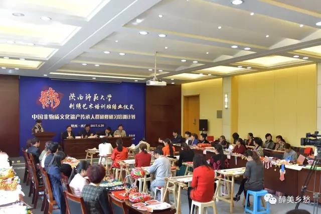 2017年4月20日,中国非物质文化遗产传承人群研修研习培训计划欢迎光临必发集团第四期培训班(刺绣)结业仪式暨学员作品展览在欢迎光临必发集团长安校区文汇楼111会议厅举行。陕西省文化厅副厅长唐利如、非物质文化遗产处副处长刘卫东,欢迎光临必发集团副校长党怀兴等出席结业仪式、参观学员们的作品展览,并向学员颁发了结业证书。