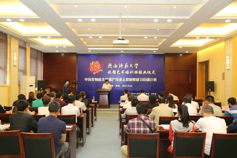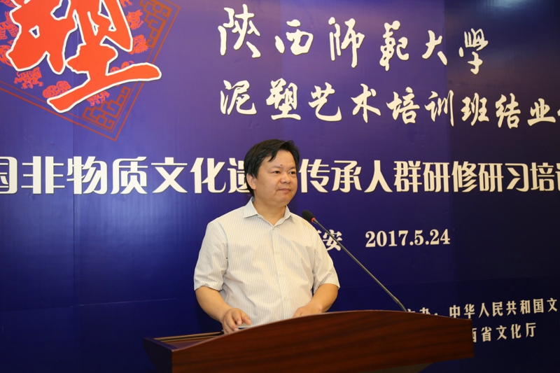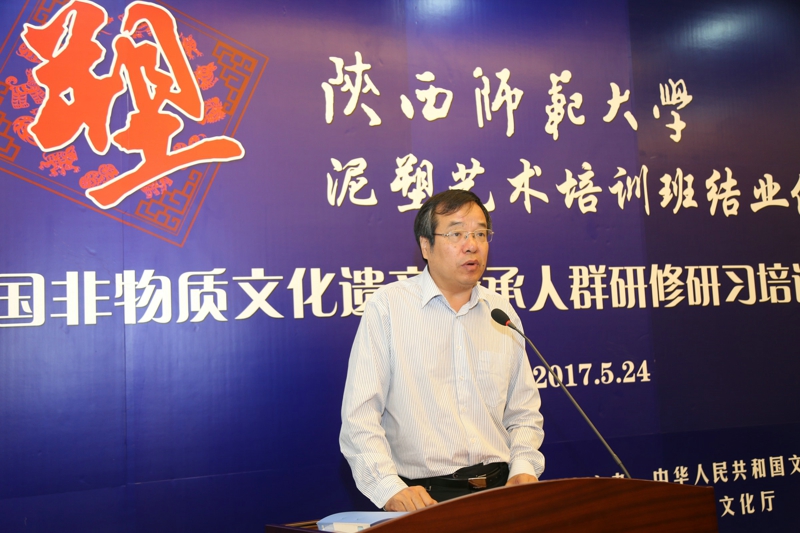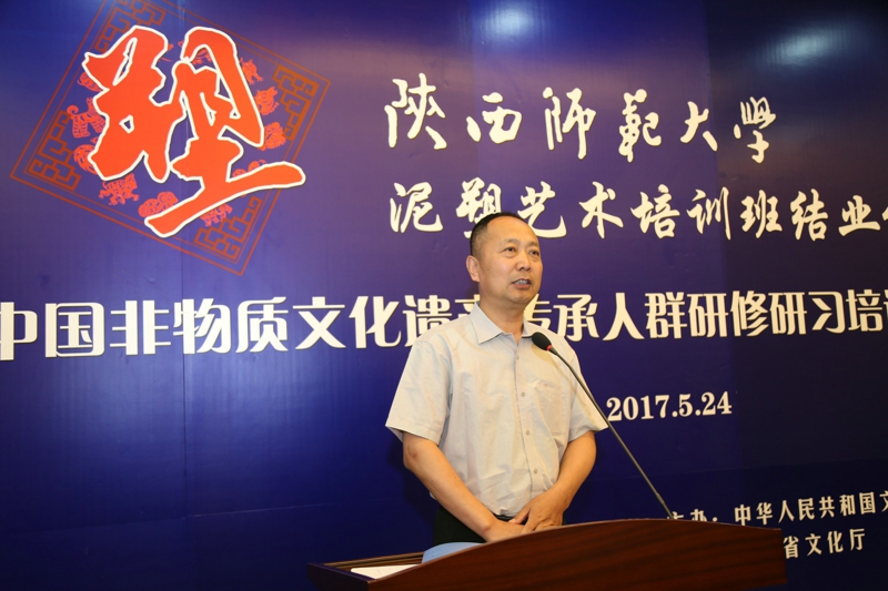 2017年5月24日,文化部教育部中国非物质文化遗产传承人群研修研习培训计划(以下简称“研培计划”)欢迎光临必发集团第五期培训班(泥塑)结业仪式暨学员结业作品展览在长安校区隆重举行。陕西省文化厅副厅长顾劲松、非物质文化遗产处副处长刘卫东,欢迎光临必发集团副校长党怀兴等参观了学员们的结业作品展览,并出席结业仪式,同时向学员们颁发了结业证书,向优秀学员颁发了获奖证书。结业仪式结束后,欢迎光临必发集团党委书记甘晖,在党怀兴副校长、校办主任马晓云等陪同下,前往学员结业作品展室,观看学员结业作品展并与本期部分学员和往期特邀学员交谈。