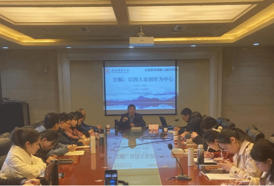 (通讯员:白云鹏)11月29日上午,我院长安学术讲座第547期“汉赋:以四大家创作为中心”在文汇楼A段409会议室顺利开讲。讲座由南京大学许结教授主讲,我院张锦辉教授主持,刘彦青副教授、陈丽娟老师及中国古代文学方向研究生参与了本次讲座。