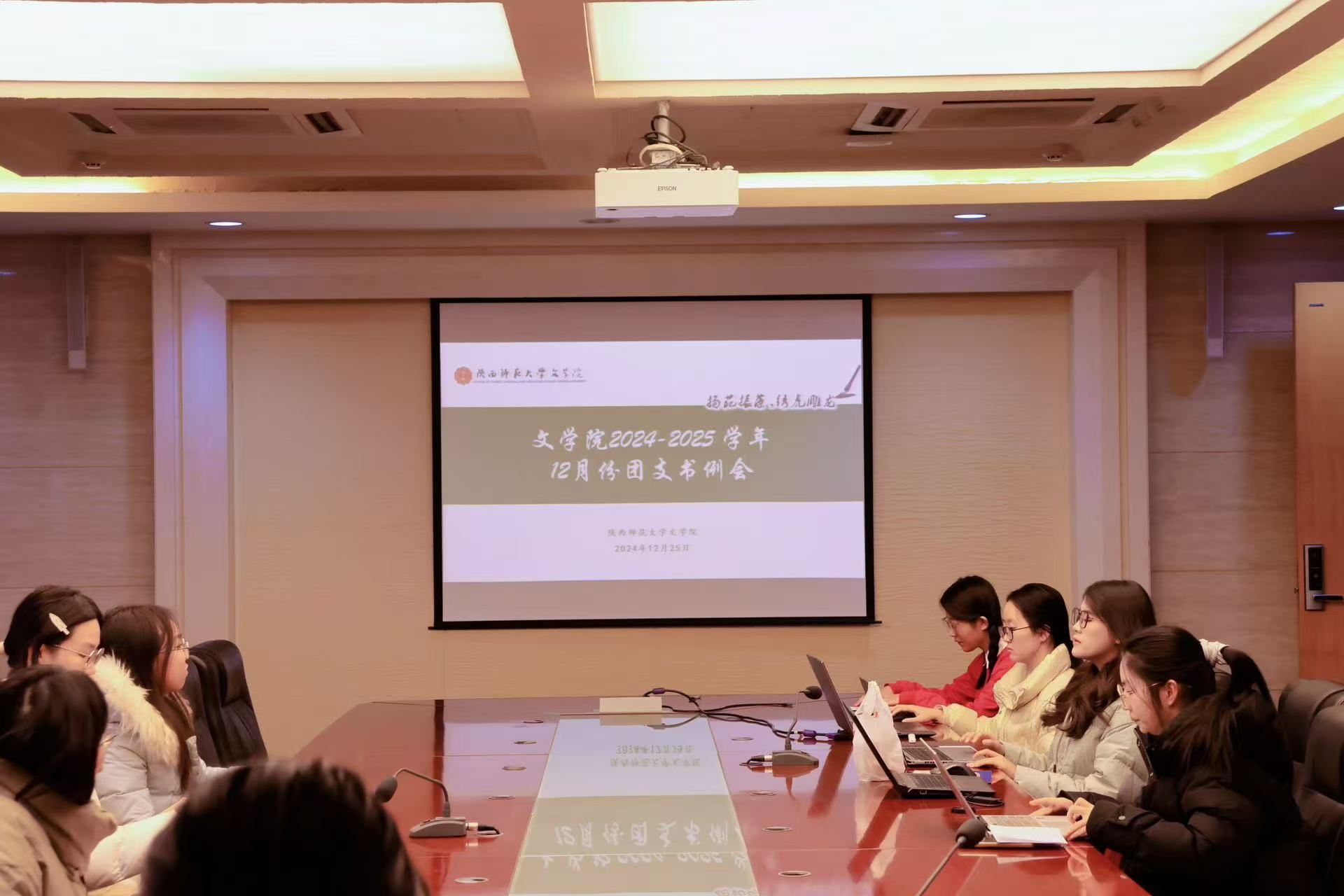 我院2024-2025学年12月团支书例会于12月25日在文汇楼A段409教室召开。团委主要学生干部和各团支部书记参会。会议由兼职团委副书记彭佳怡主持。
