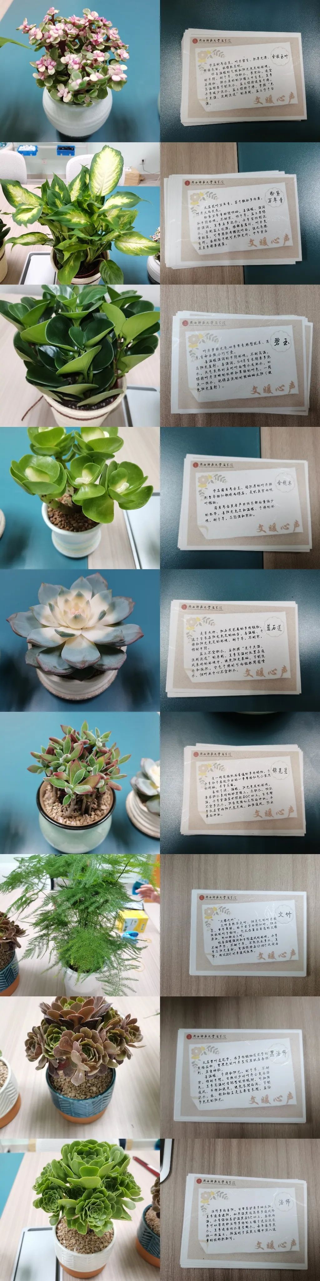绿植附有专属名片一张,两面分别为绿植简介和待“绿植守护官”们补充的宿舍信息和美好寄语!