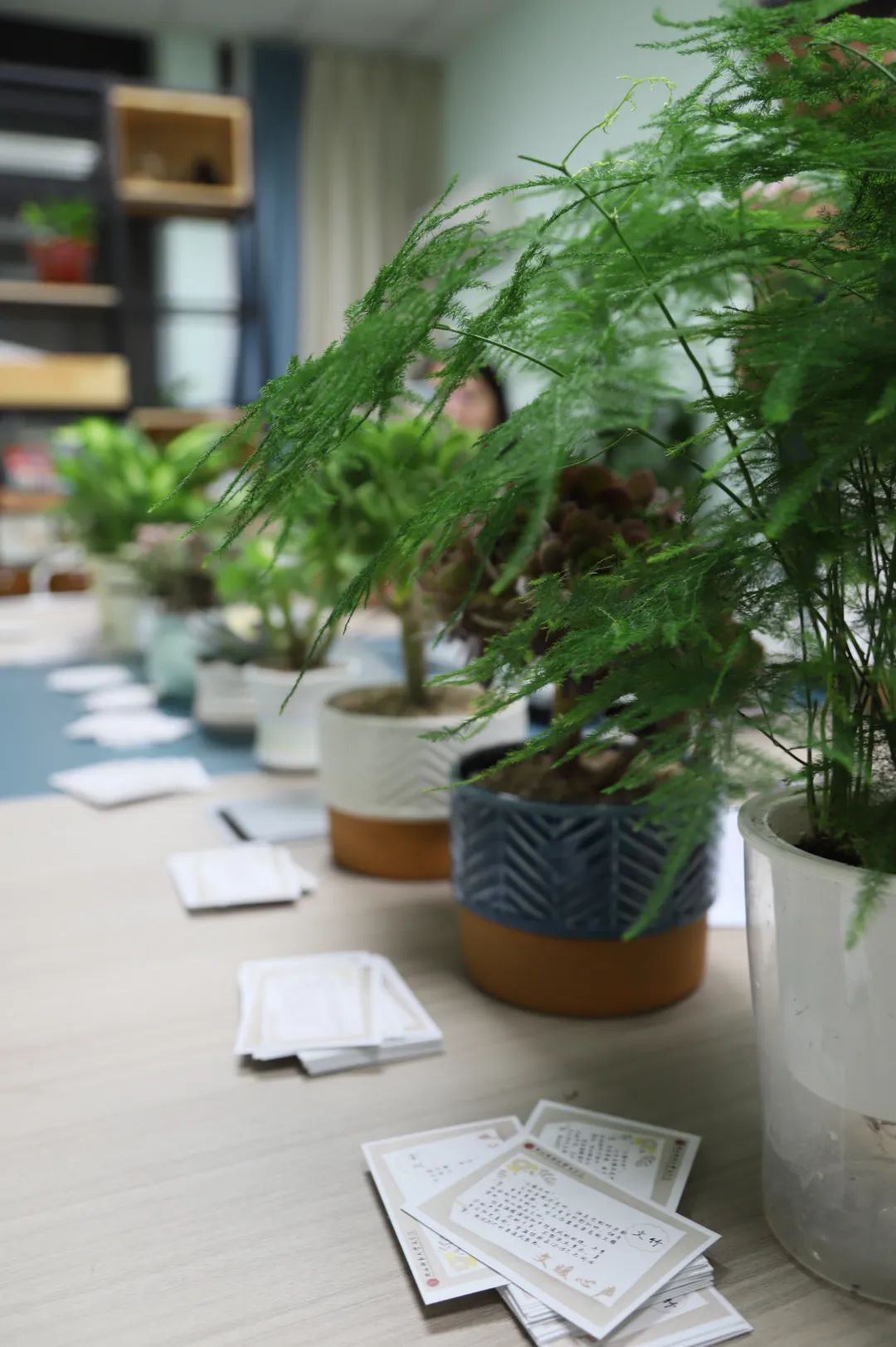 在选择好中意的绿植后,需填写专属名片信息,亲手将卡片塑封打孔,穿绳后悬挂在绿植合适的位置上,并在签领表上留下“绿植守护官”的信息。