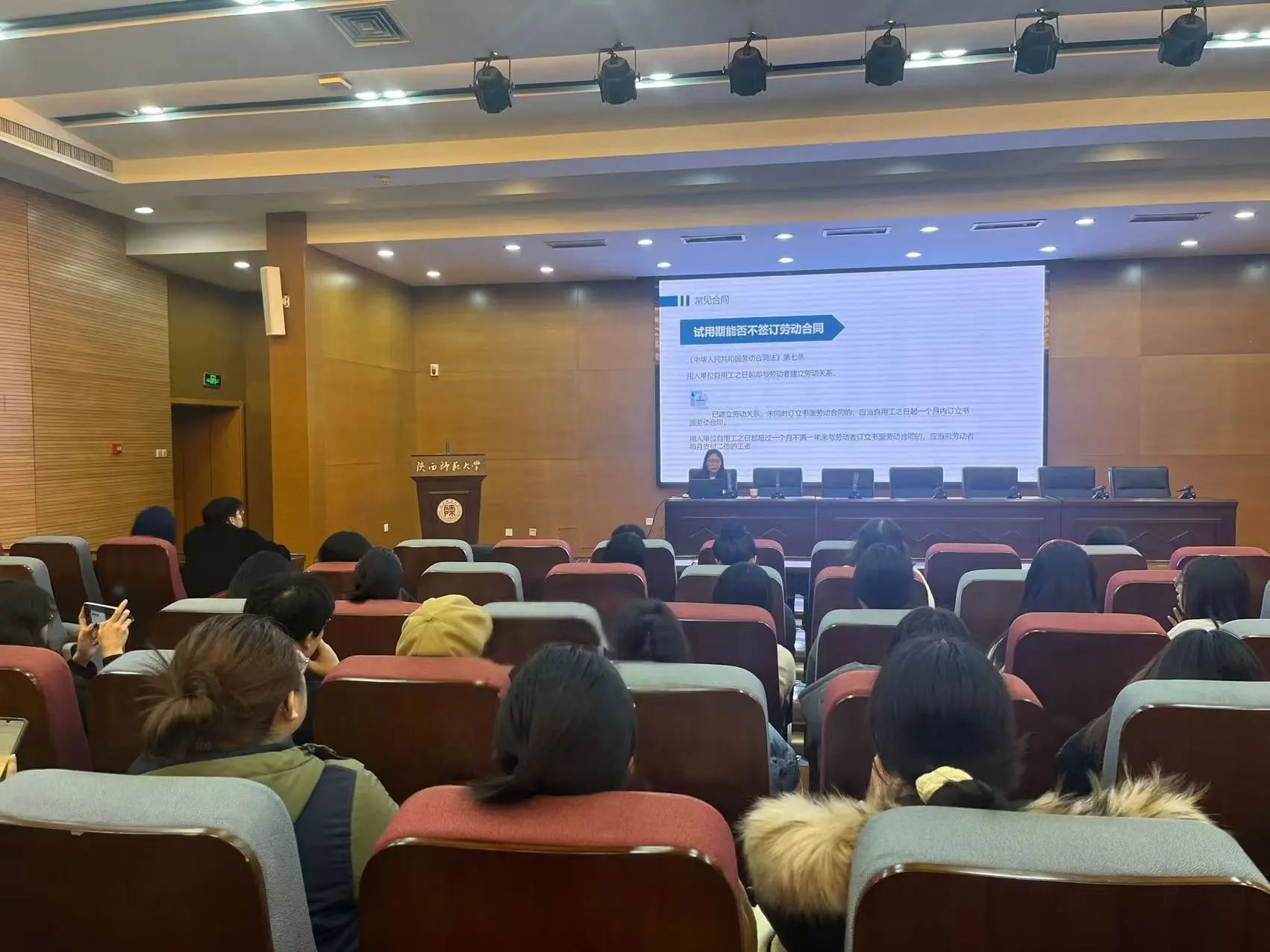 (通讯员:郭佳迪)为提高毕业生职场胜任力,12月12日下午,我院在文汇楼C段二层报告厅举行了“职场权益保护”主题讲座,由北京市炜衡(西安)律师事务所张艳艳律师主讲,学校法律事务办公室正科级秘书赵咪、学院本科生辅导员胡雪梅和2025届毕业生参与了此次讲座。