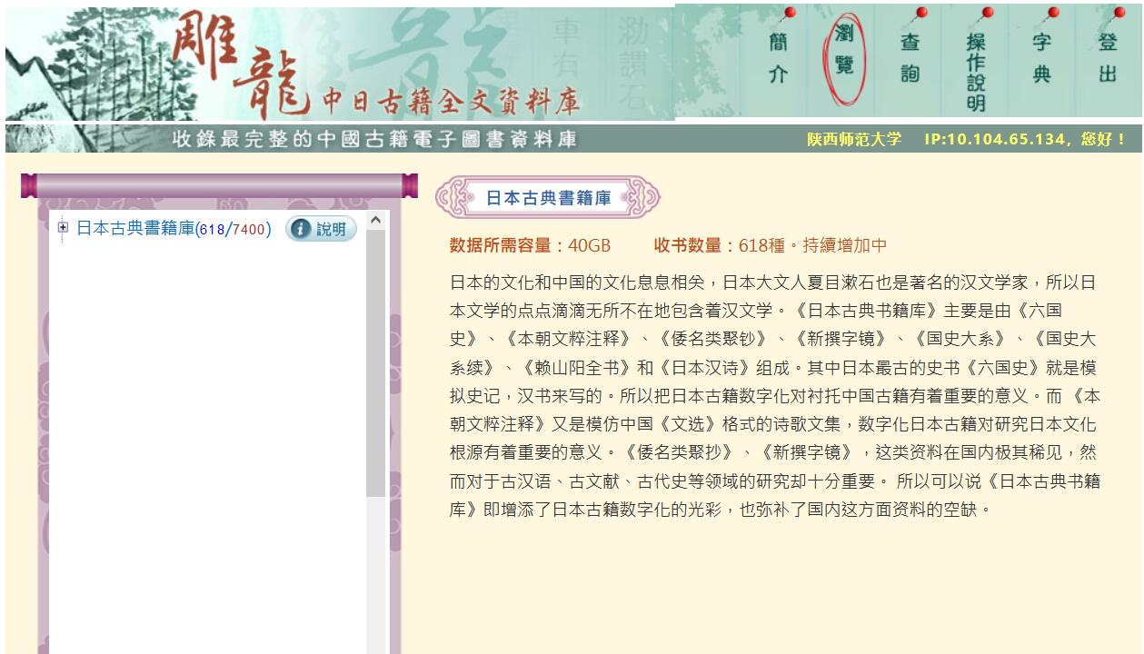 雕龙中国古籍全文数据库(日本古典书籍分库)